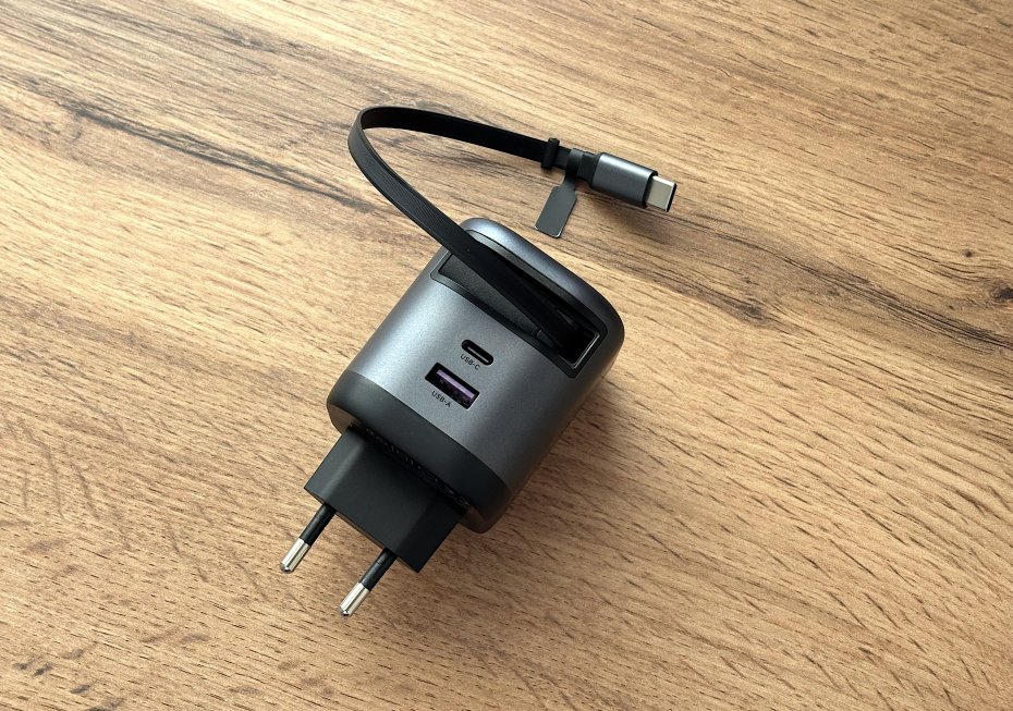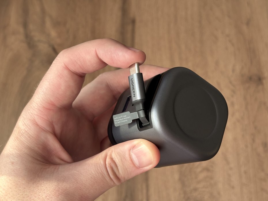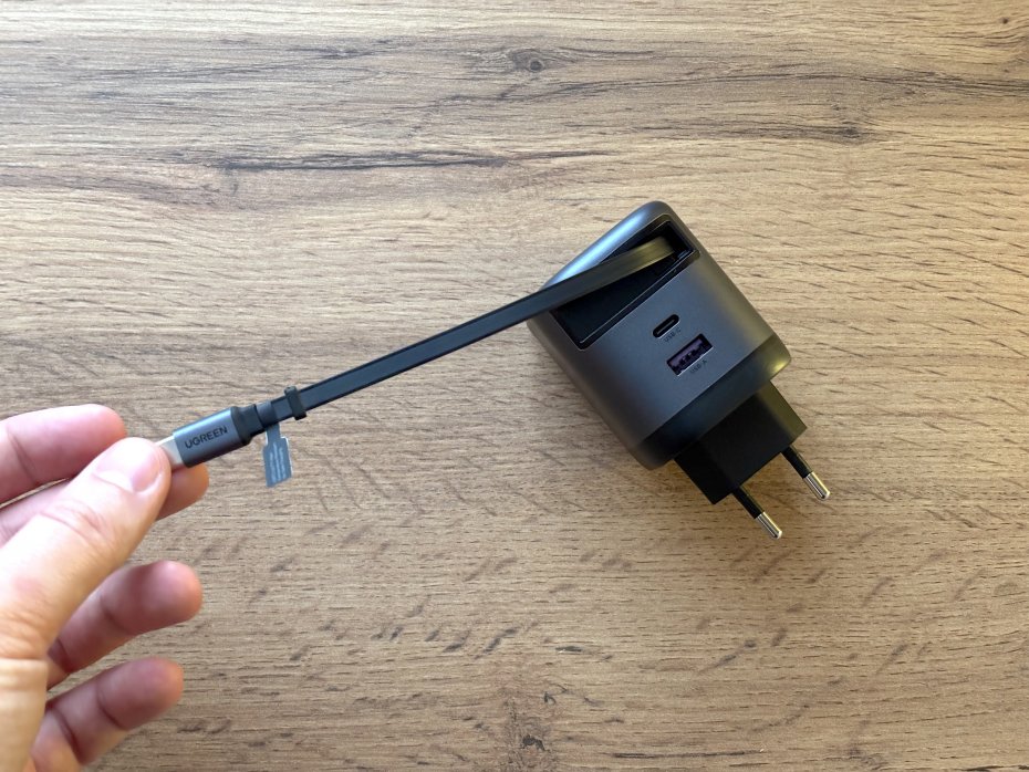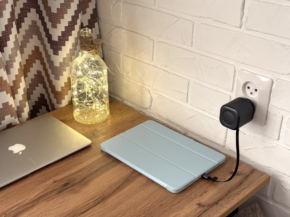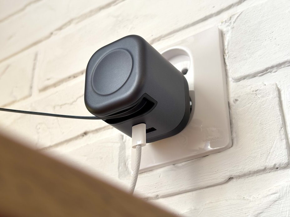 В данном случае впечатления схожие. Встроенный кабель USB-С это идеальная штука для ежедневной рутинной подзарядки смартфона и планшета, который не создает бардака вокруг розетки. Вытащил — подключил — полетели. Зарядилось — отключил — провод втянулся. Мечта перфекциониста.