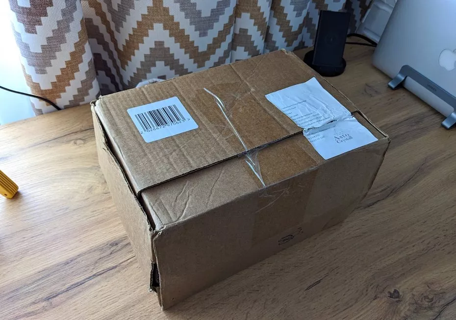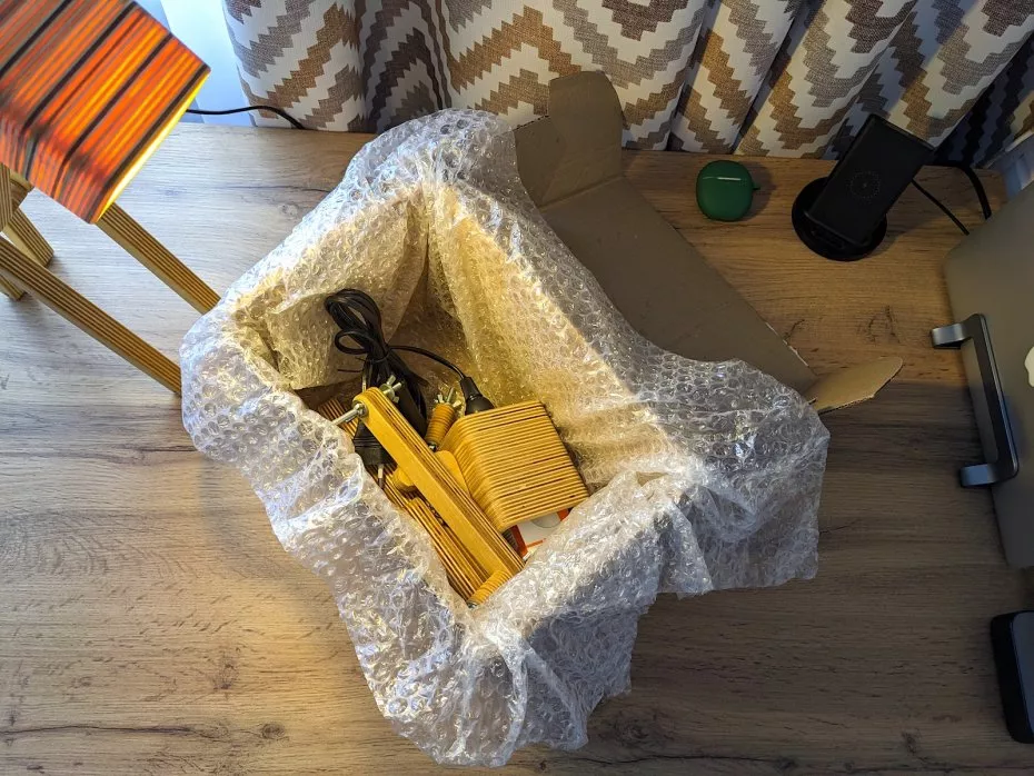 Торшер приежает в обычной технической картонной коробке. Содержимое заворачивается в пупырку. Всё это отлично годится для доставки товара, но если вы берете лампу для подарка, то обязательно подумайте о красивой упаковке — штатная совершенно не подходит для этой цели.