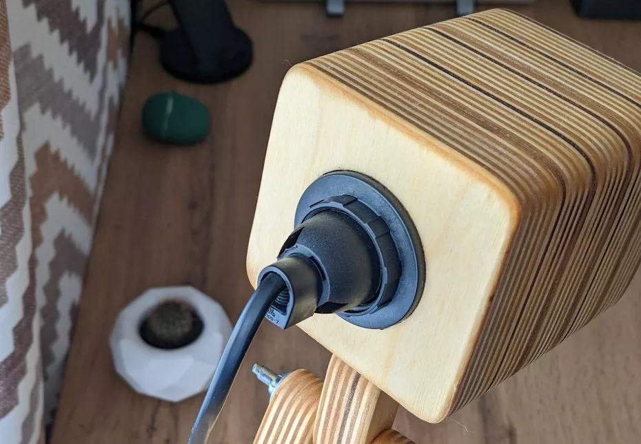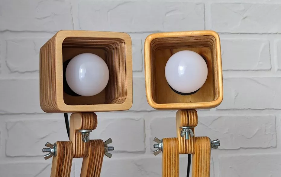 Детали сделаны из толстой фанеры, и мне показалось, что они обрабатываются вручную: на детальках иногда слегка отличаются закругления краев, внешний вид плафона и так далее. Для меня это скорее преимущество, поскольку каждая лампа уникальна. Детали крепкие, без дефектов, расслоений и брака. Для водостойкости их обрабатывают льняным маслом.