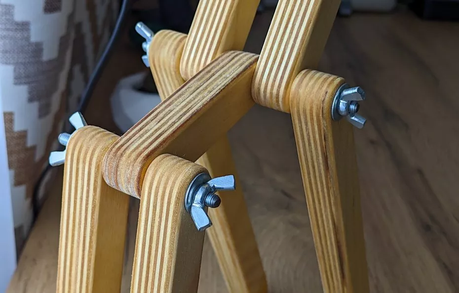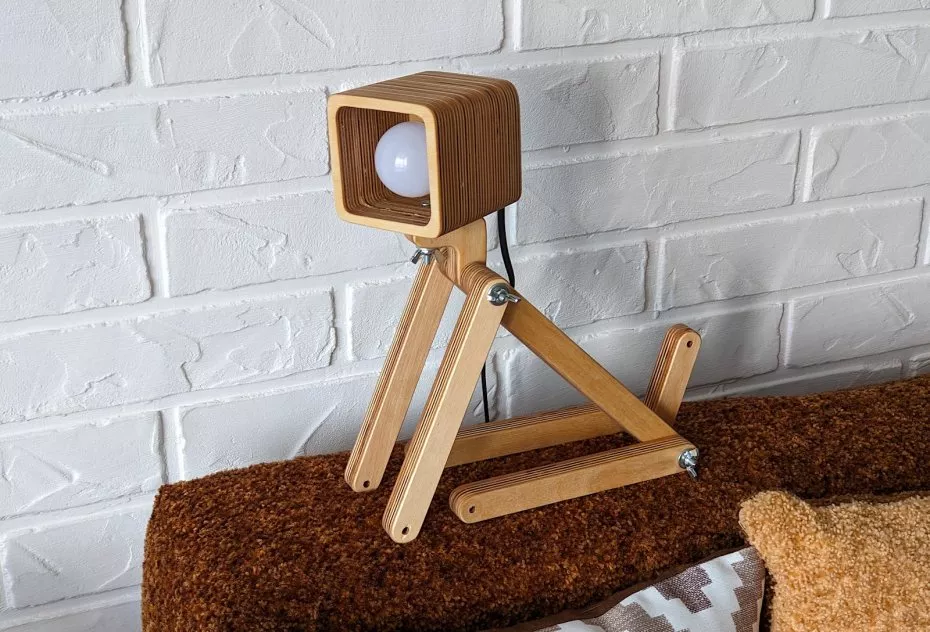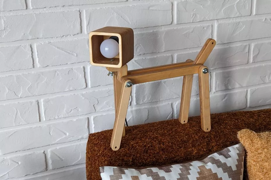 Супруга давно заприметила «лампу-собачку», как мы теперь между собой её называем. Это небольшой деревянный торшер-конструктор под названием «Стиви» — мы заказали его пару месяцев назад, и сейчас мне захотелось поделиться впечатлениями. Лампу изготавливают в России. Спойлер: она стоит очень разумных денег.