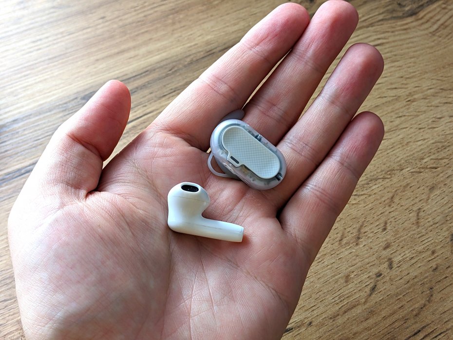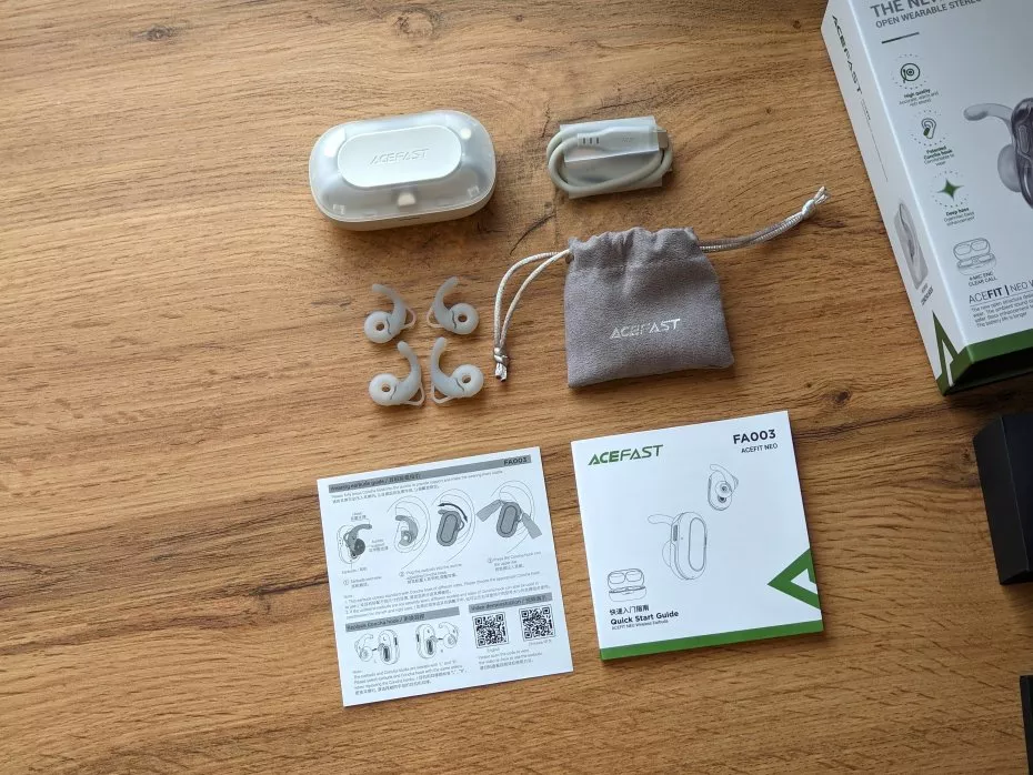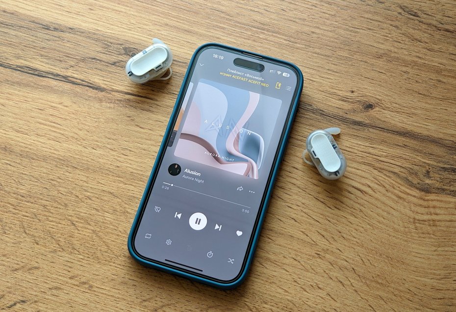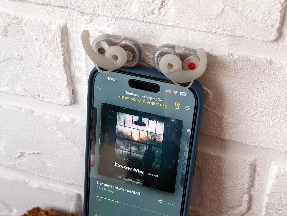 Впрочем, ушами я не ощущал ни размеры, ни увесистость наушников: резиновый «подвес» будто берет всё на себя, и Acefit Neo практически не чувствуются в ушах. Пожалуй, это вайбы эйрподсов, но форм-фактор совершенно другой.