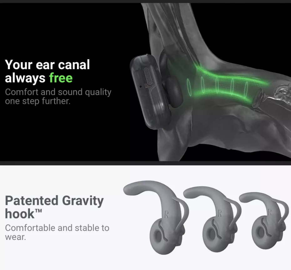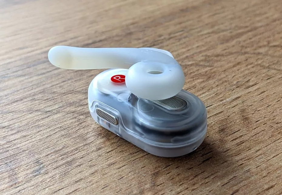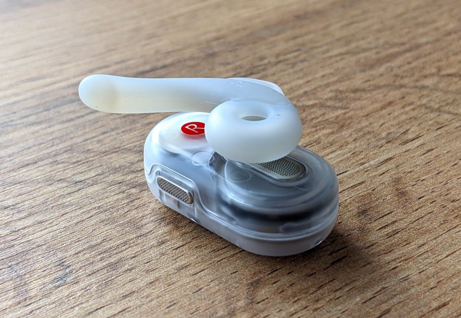 Системы активного шумоподавления здесь очевидно нет и быть не может — ведь это открытые наушники. По той же причине отсутствует датчик кожи, который включал бы паузу при снятии наушника: при такой посадке определить надевание и снятие не представляется возможным.