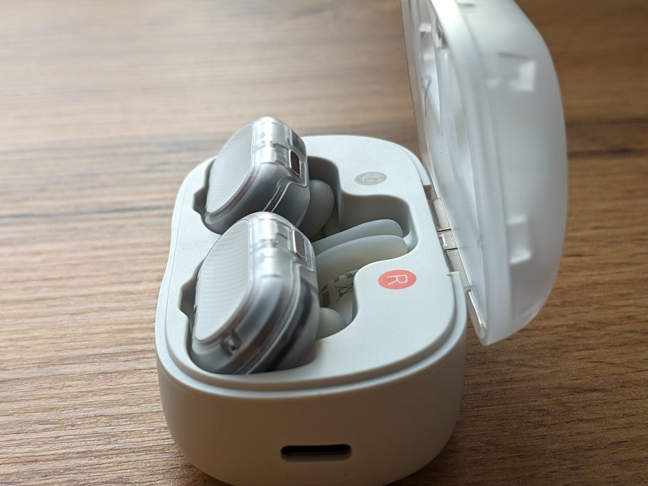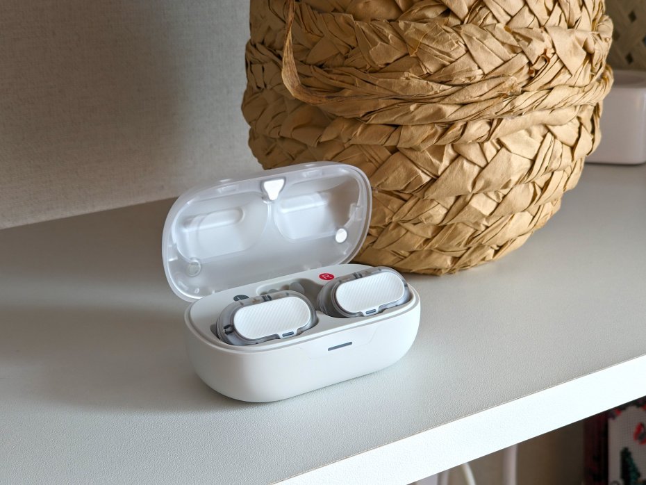 Давайте немного о спецификациях. Внутри прячется свежий чип Bluetooth 5.3 (но опять без двойного подключения), аккумуляторы по 70 mAh каждый и динамики 14,8 мм. Поддерживаются два стандартных кодека — SBC и AAC, для Android и iOS соответственно. Плакать о LDAC не стоит: с такой конструкцией наушников услышать Hi-Res просто невозможно. Также заявлена защита IPX4 и быстрая зарядка.