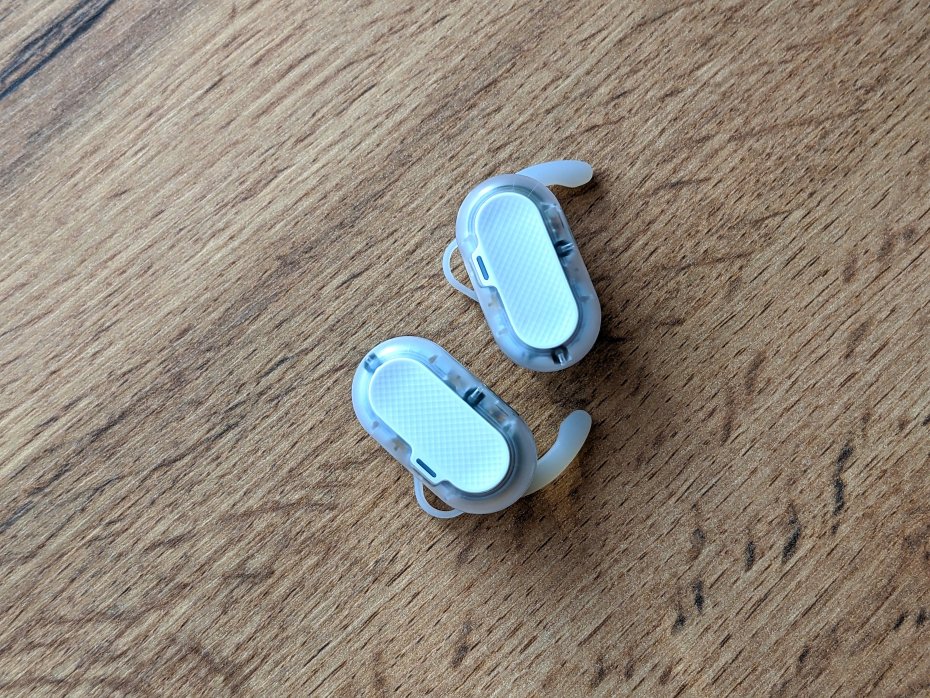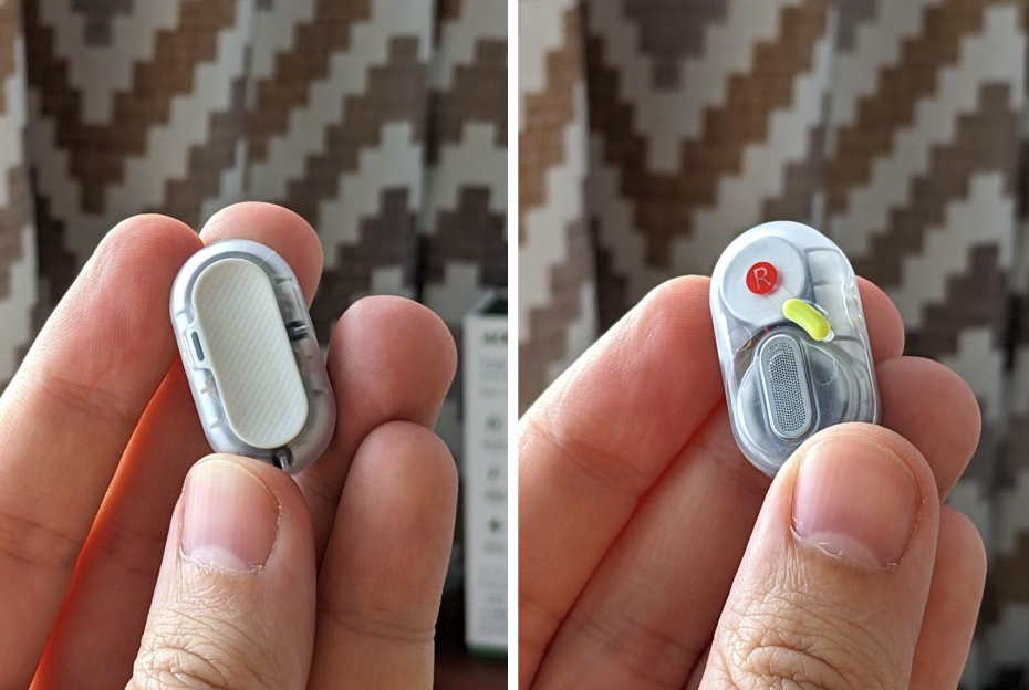 Сами наушники выглядят как два овальных, толстеньких, упитанных таракана безо всяких изгибов и завихрений. Просто пара больших «пилюль». На одной стороне у каждого наушника расположена довольно большая продолговатая сенсорная площадка, а на другой — обозначение «левый/правый» и решетка динамика.