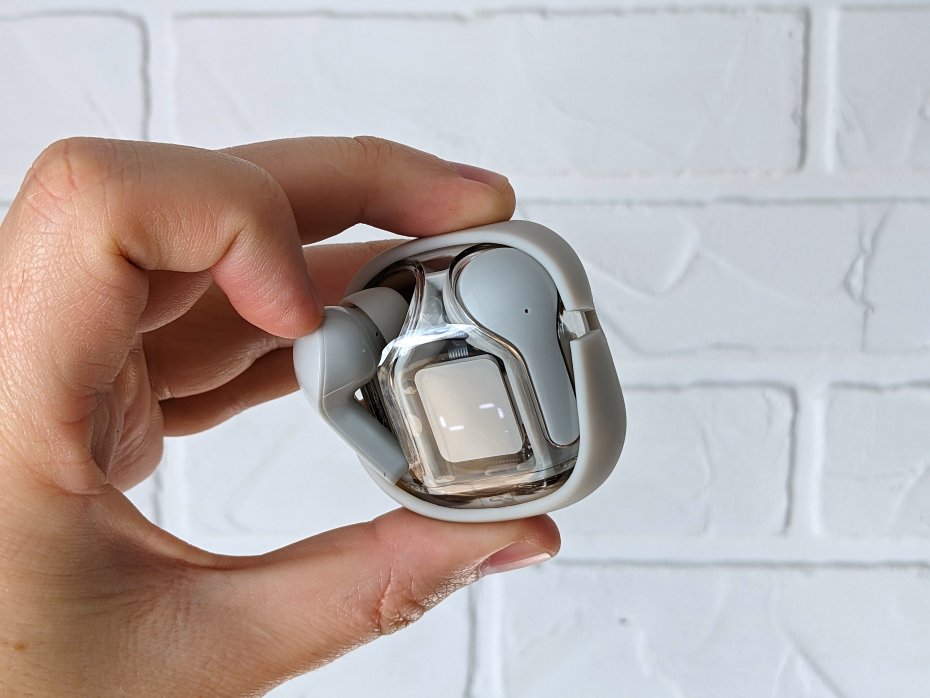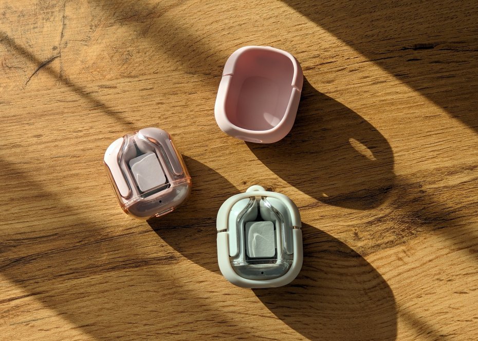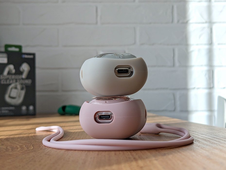 Тот редкий случай, когда в жизни девайс выглядит на порядок лучше, чем на фото. Наушники симпатичные, но с выбором цвета нужно заморочиться: зеленые или голубые я бы точно не брал. Они максимально няшные не только на вид, но и на ощупь — кейс ну оочень маленький, настолько, что даже моя супруга захотела забрать их себе.