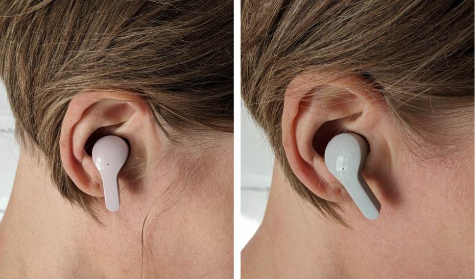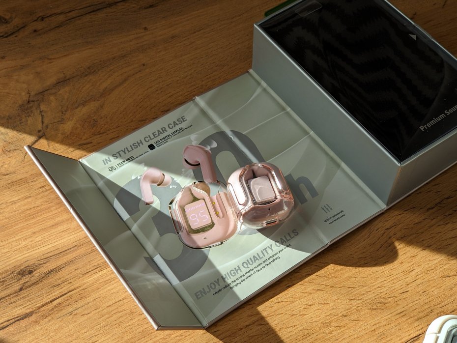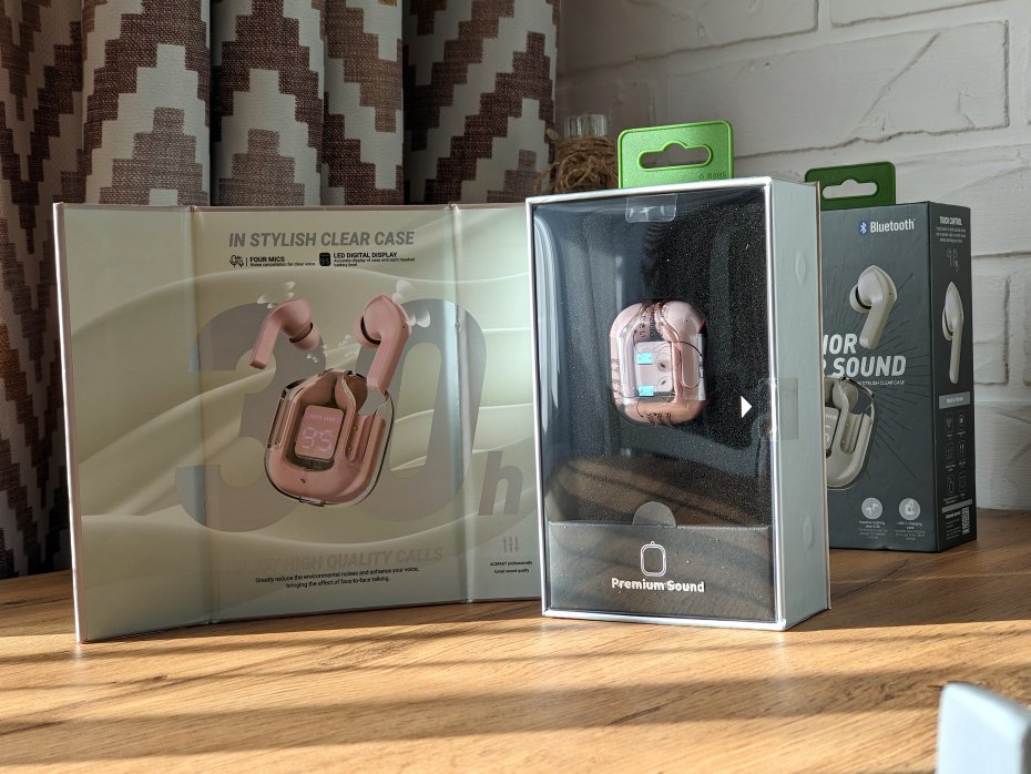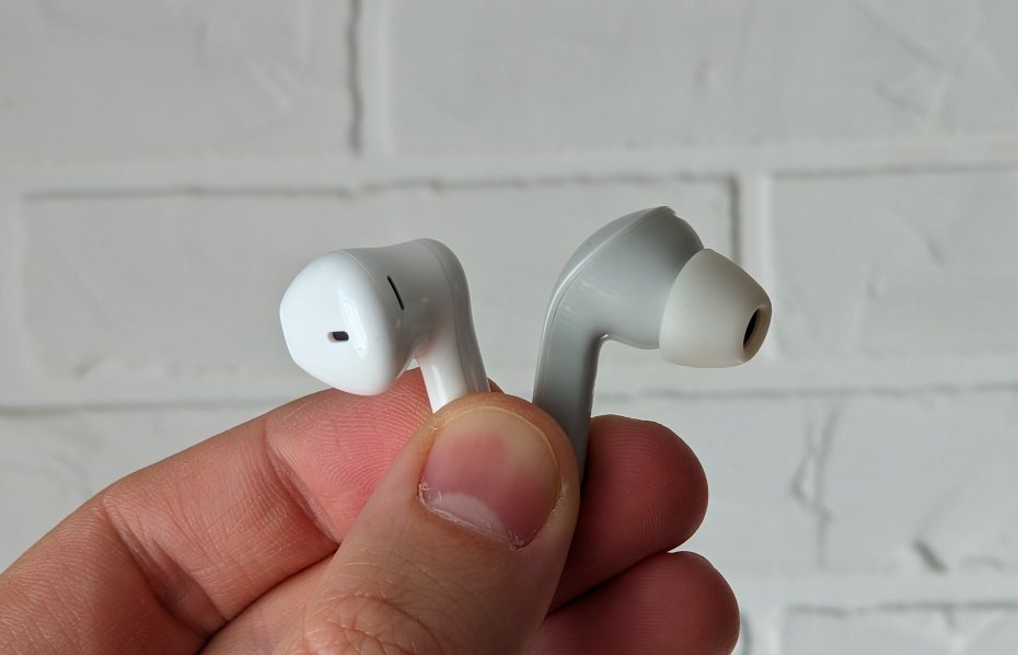 Я немного растерялся в ощущениях: наушники выглядят то дешево, то стильно. Наверное, зависит от освещения. В целом внешка мне зашла. А еще наушник в розовом цвете совершенно теряется в ухе; причем он не поросяче-розовый, а немного сероватый, класс.