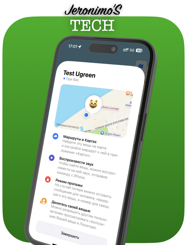 Метки работают штатно, как и «яблочная». Они отслеживаются на карте, подают звуковые сигналы из встроенного динамика при поиске, и в целом повторяют функциональность AirTag. Перемещение по карте отображается с небольшим лагом, то есть следить как она плавно перемещается в чьем-то кармане в реальном времени не получится, локация смещается с периодическим обновлением несколько раз в минуту. В целом это обычное поведение подобных аксессуаров. Утерянный или украденный кошелек с меткой UGREEN вы точно найдете.