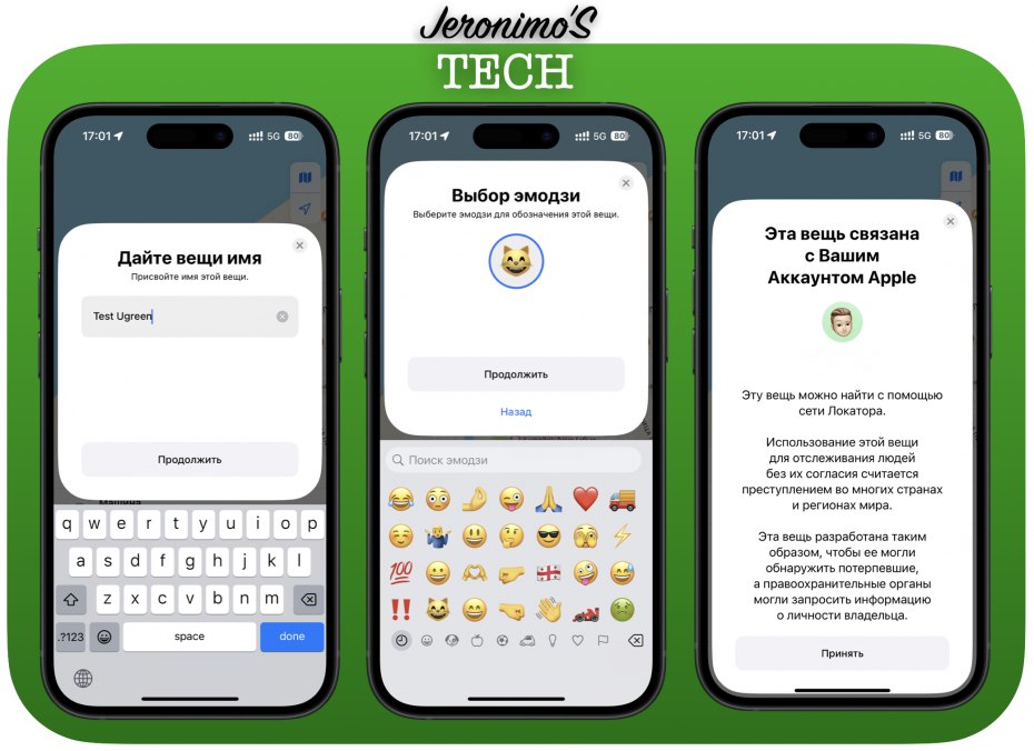 У круглой модели была особенность: спустя сутки она начинала переодически издавать короткий писк, находясь в режиме ожидания. В двух новых моделях я такого не заметил, видимо поправили ПО. Отдельного приложения от UGREEN для смарт-меток не существует, но оно и не требуется: всё управление происходит из штатного «Локатора», в том числе привязка и отвязка.