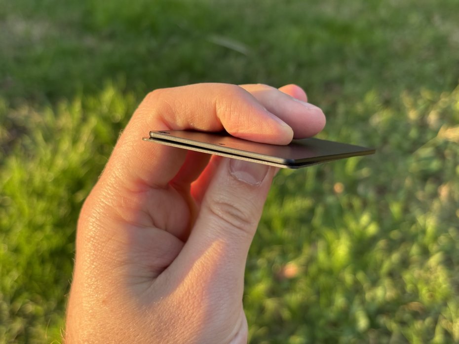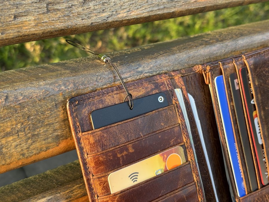 Отдельно хочется сказать про прямоугольную модель. По габаритам она соответствует пластиковой банковской карте, и примерно вдвое толще ее. Во все мои бумажники, кошельки и маленькие кармашки она залетела просто как родная, внутри совершенно не ощущается. Эта модель — идеальный аксессуар для кошелька. А вот квадратную уже можно по классике подвесить на рюкзак, ключи или закинуть в бардачок авто.