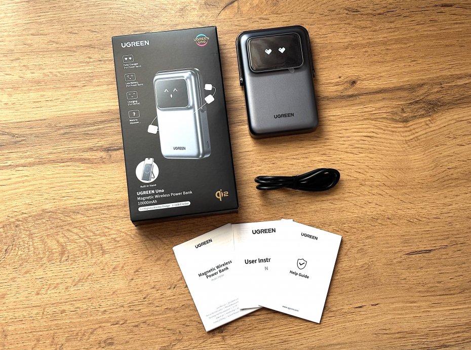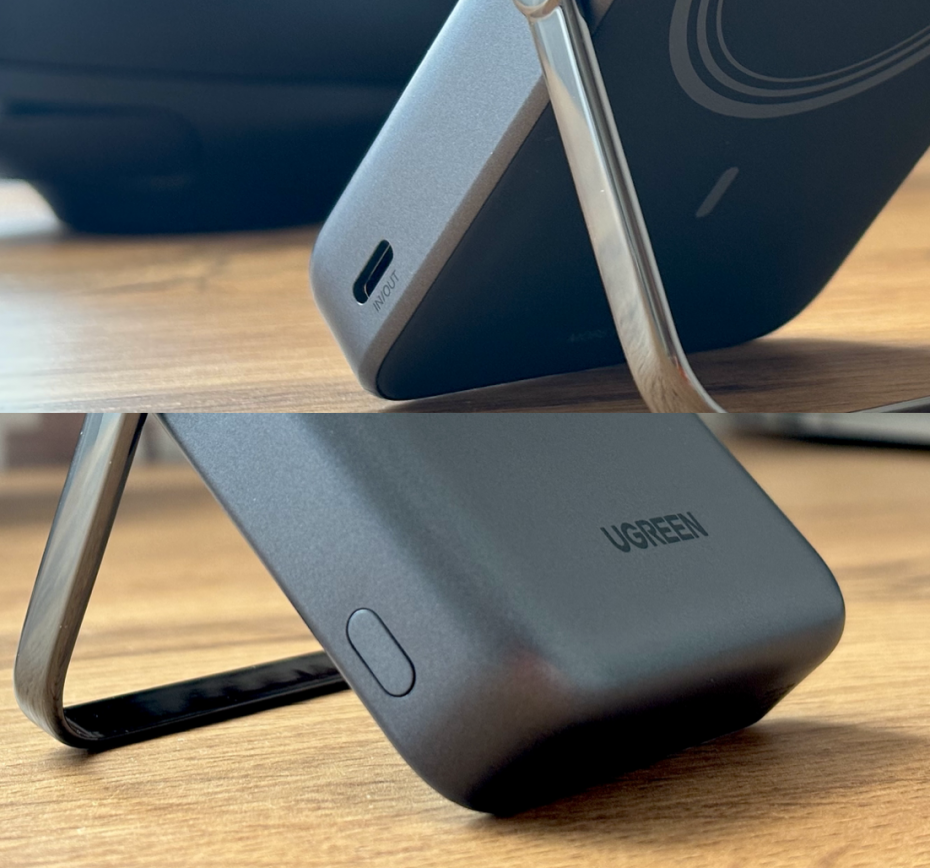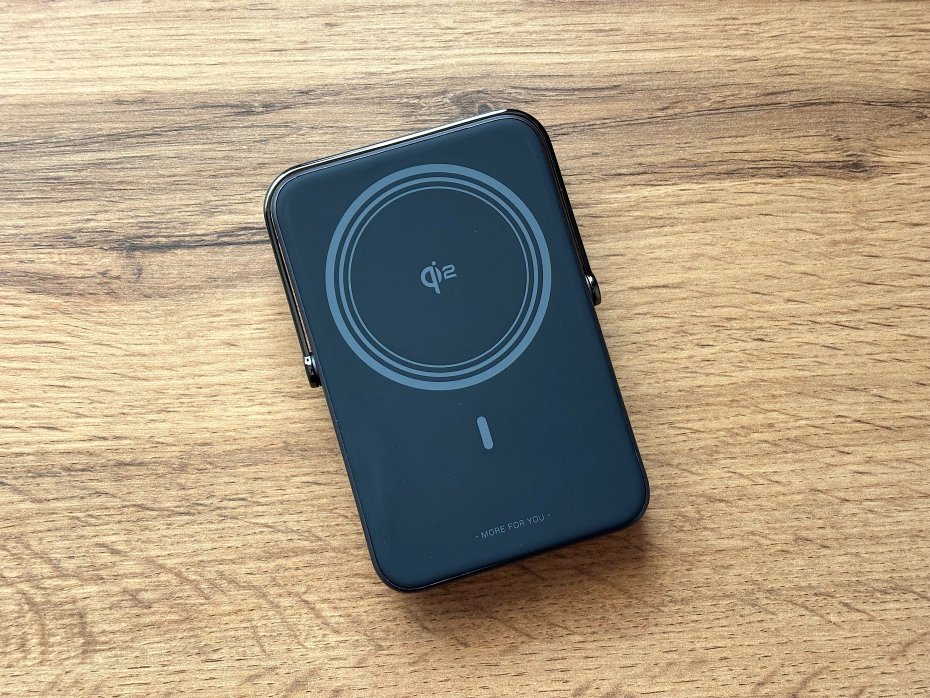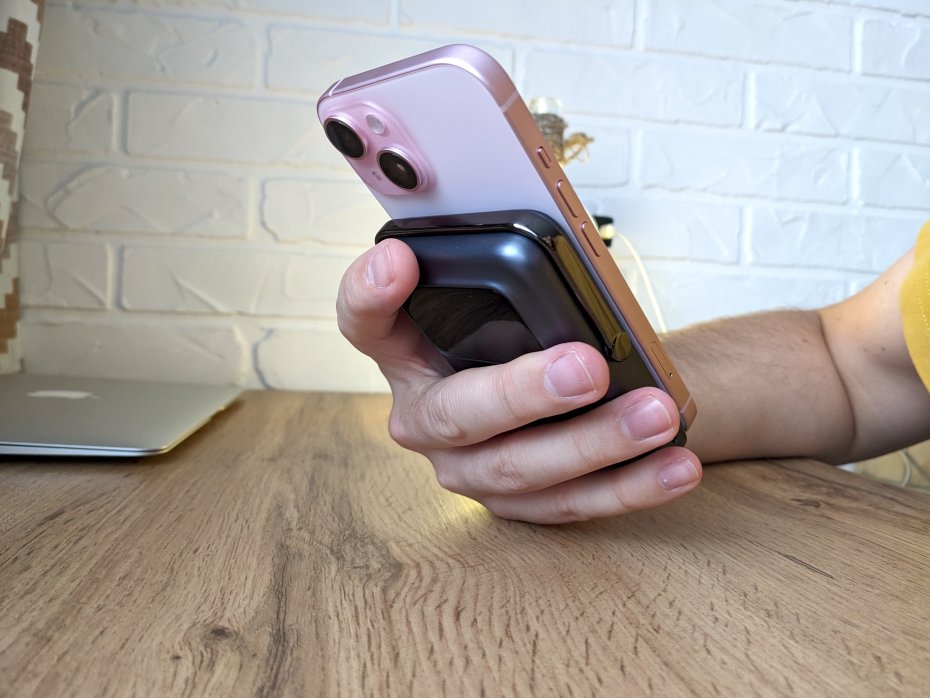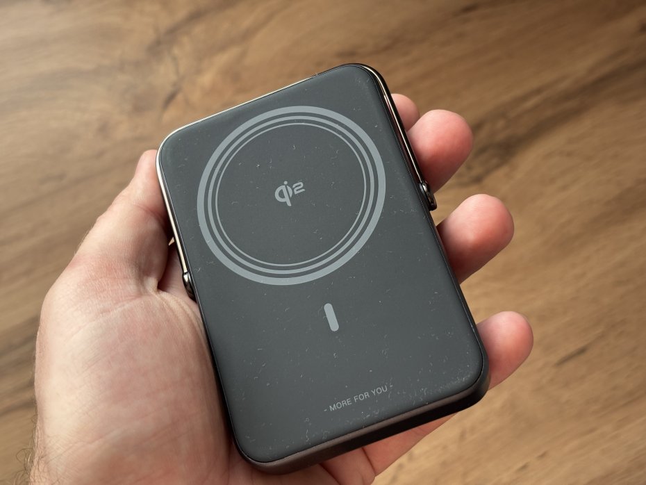 Зарядка пауэрбанка происходит через единственный порт Type-С на торце, и делает это довольно быстро (около 1,5 часов) при наличии блока питания мощностью от 22W (а лучше от 30W). По беспроводу он заряжаться не умеет, и очень жаль: у меня дома есть настольная зарядка от UGREEN с MagSafe, и было бы очень круто цеплять на нее повербанк для его зарядки. Увы.