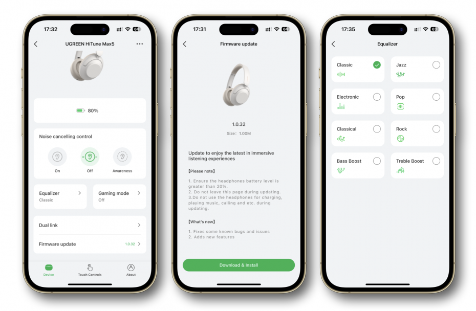 Мне уже прилетел первый апдейт ПО, буду ставить 🔥 Теперь наушники UGREEN не уступают более именитым брендам по части удобства использования — с помощью приложения можно настроить девайс по своим вкусам и потребностям.