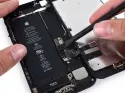- Откладываем экран в сторону и глубоко выдыхаем. Теперь ты лицом к лицу с аккумулятором. И здесь интересно. Аккумулятор приклеен к корпусу. Однако сделано это хитро, и фен тебе не понадобится. Снизу аккумулятора предусмотрены язычки, потянув за которые можно просто вытащить клейкие полоски из-под аккумулятора и он отделится сам. Посмотри внимательно - язычки выглядят как две (или три на Plus) узкие черные накладки на нижнем краю батарейки. Аккуратно подковырнув один, ты увидишь белую ленту под черной пленкой. Эту ленту нужно вытянуть из-под батарейки. НО! Она очень легко рвется! Тянуть нужно строго под углом 45 градусов и - внимание - крайне медленно! Это очень важно. Как только поторопился - лента обрывается и остается глубоко под аккумулятором. Очень медленно вытягивай обе ленты с характерным забавным звуком и откладывай старый аккумулятор в сторону.