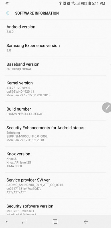 Помимо обновления до Android 8.0 прошивка под номером N950FXXU3CRC содержит обновленную фирменную оболочку от Samsung Experience 9.0, а также мартовский патч безопасности от Google.