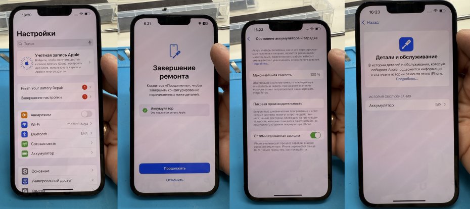 В iOS 18 для телефонов 12 серии и выше разрешили установку сторонних оригинальных аккумуляторов. Это значит, что просто ставите аккумулятор с другого телефона (которые свободно продаются с количеством циклов до 30), заходите в настройки и "завершаете ремонт". Аккумулятор впишется, всё будет работать хорошо, а телефон будет писать, что аккумулятор б/у. Разумеется, телефон, с которого снят аккумулятор, не должен быть в режиме пропажи, иначе прописать деталь не получится.