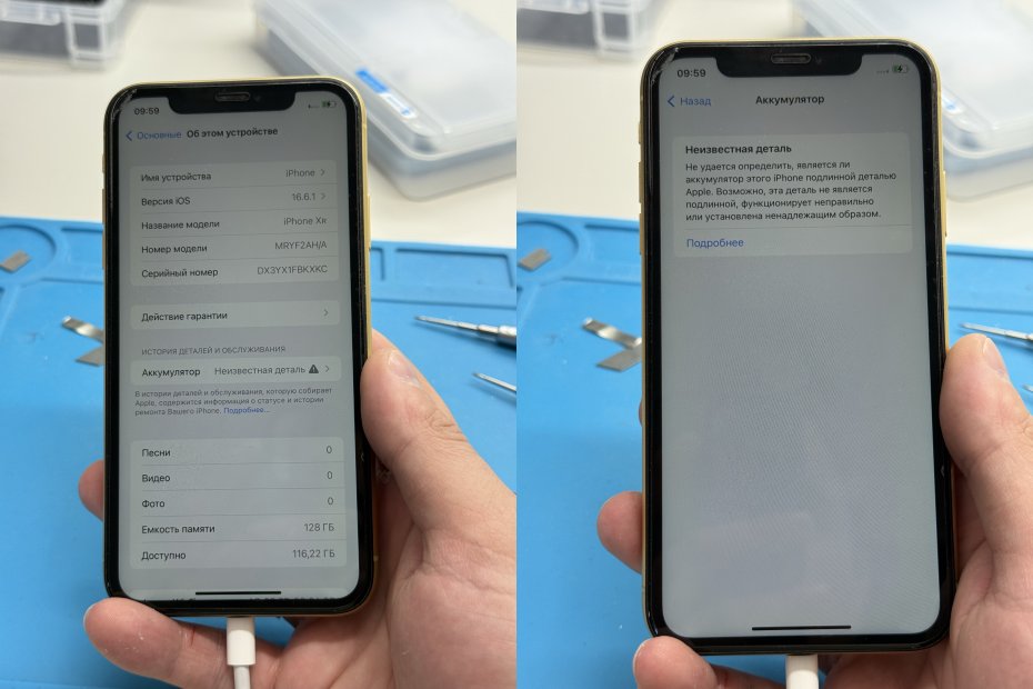 Здесь Apple решили начать "затягивать гайки". Если просто установить новый аккумулятор, система будет ругаться и писать "неизвестная деталь", функции здоровья аккумулятора перестанут работать (в iOS 18.1 здоровье всё же включили).