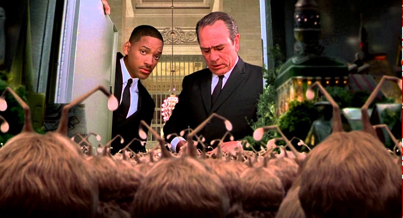 Ну остальное плюсы. Все-таки люди в черном это люди в черном. Отдельным плюсом идут червяки. Ну какой фильм про двух напарников обойдется без них?