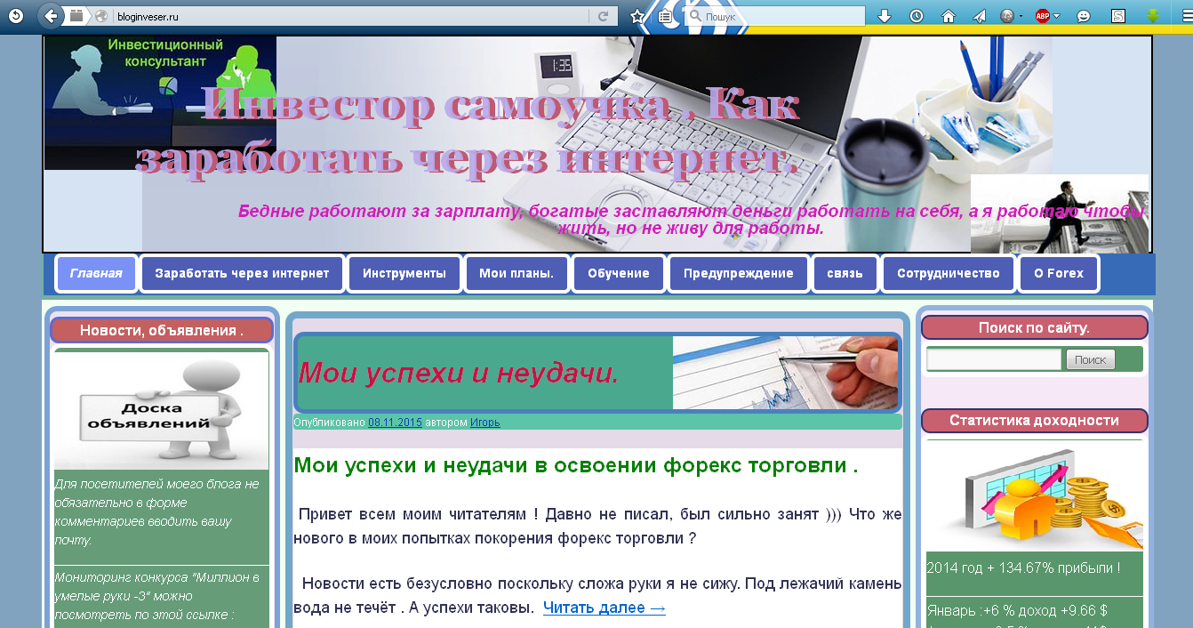 Ситуация такова, что советы о том как заработать в интернете, да еще и без вложений вам советует человек, который еще вчера (в буквальном смысле) сам искал подобную информацию. Ладно еще когда сайт на вид хороший, написано всё без ошибок, да и темы довольно простые: заработок на кликах, заработок на опросах, заработок в соц.сетях (лайки, репосты) и тд.. Но когда на ущербном сайте рассказывают о том, как автор круто поднялся на форексе - это полный пизdos, товарищи