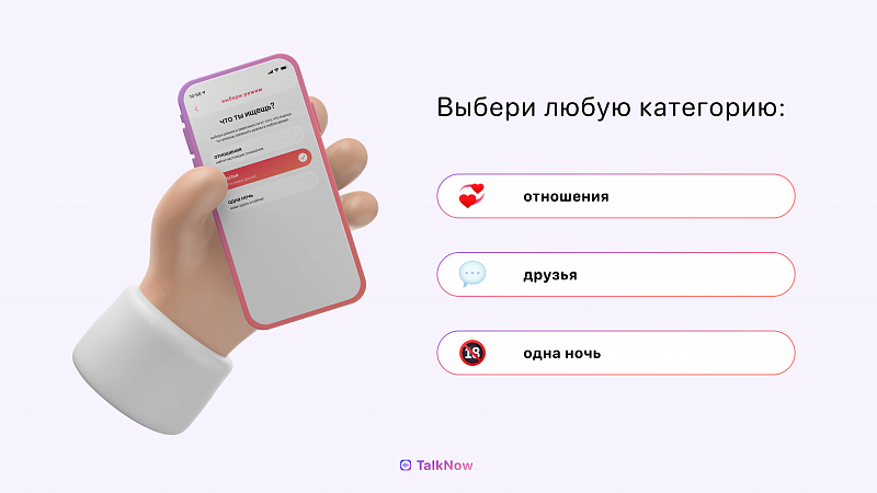 Мы решили создать TalkNow после неудачного использования приложений для знакомств, где многие диалоги обрывались даже не начавшись. А большинство пользователей прежде всего обращали внимание на внешность, а не увлечения человека.