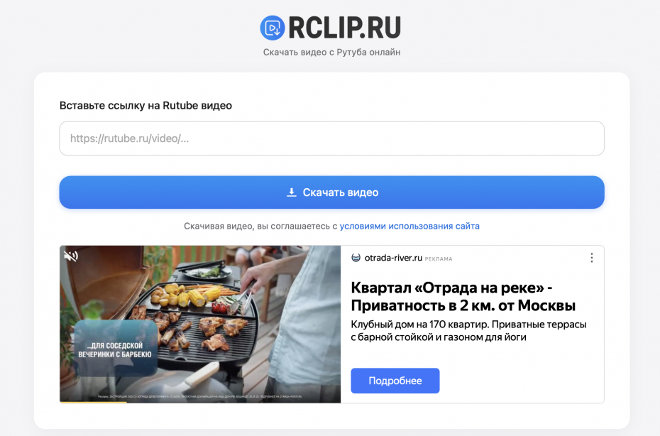 После всех мучений наткнулся на RClip.ru - единственный сервис, который реально работает без подводных камней. Самое крутое - работает одинаково хорошо везде: на компьютере, телефоне, планшете, ноутбуке. Неважно, нужно ли вам скачать видео с рутуба на компьютер или с рутуба скачать видео на телефон - принцип абсолютно одинаковый.