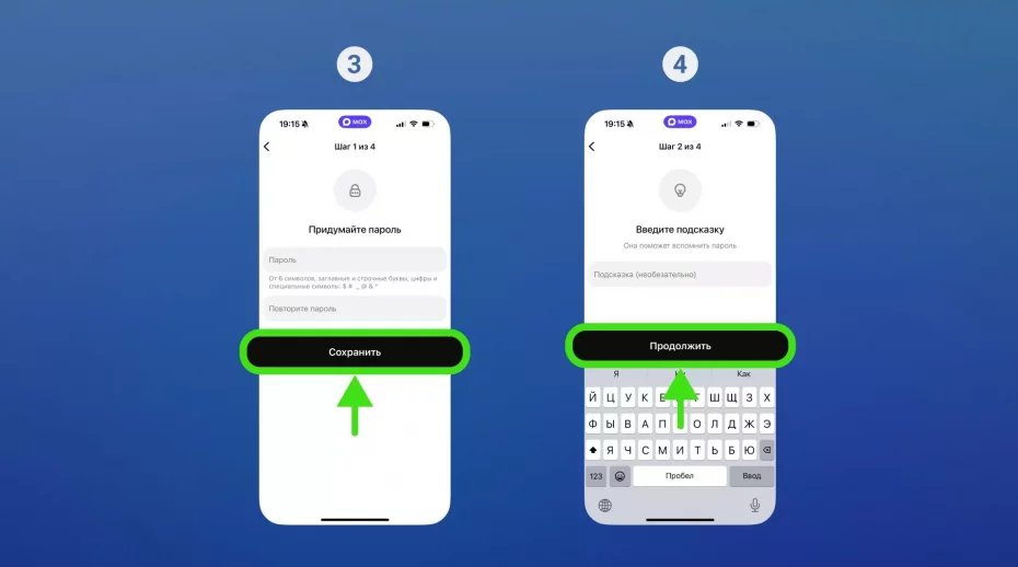 3. Укажите пароль, который будет использоваться при новом входе в профиль. Пароль должен быть надежным. Минимум одна буква и несколько цифр