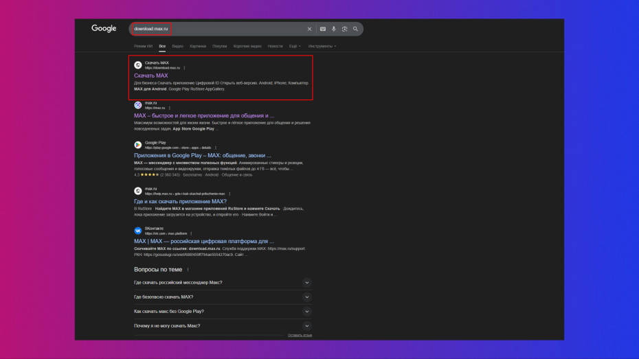 • Вбиваем в любом браузере download.max.ru — официальный сайт MAX