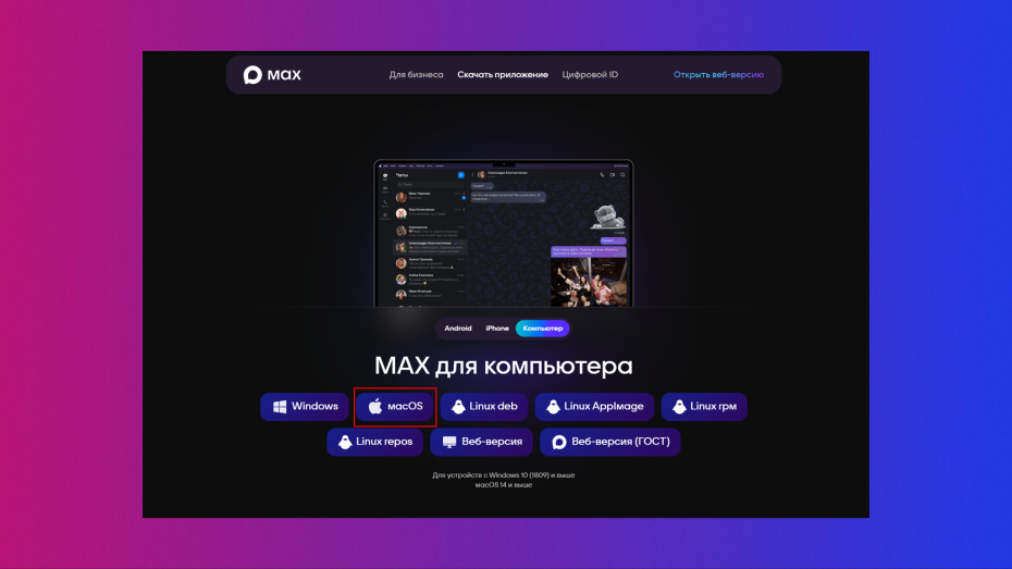 • В разделе «MAX для компьютера» жмем плашку macOS