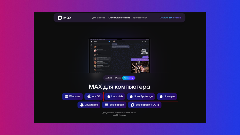 • Заходим на официальный сайт мессенджера — download.max.ru
