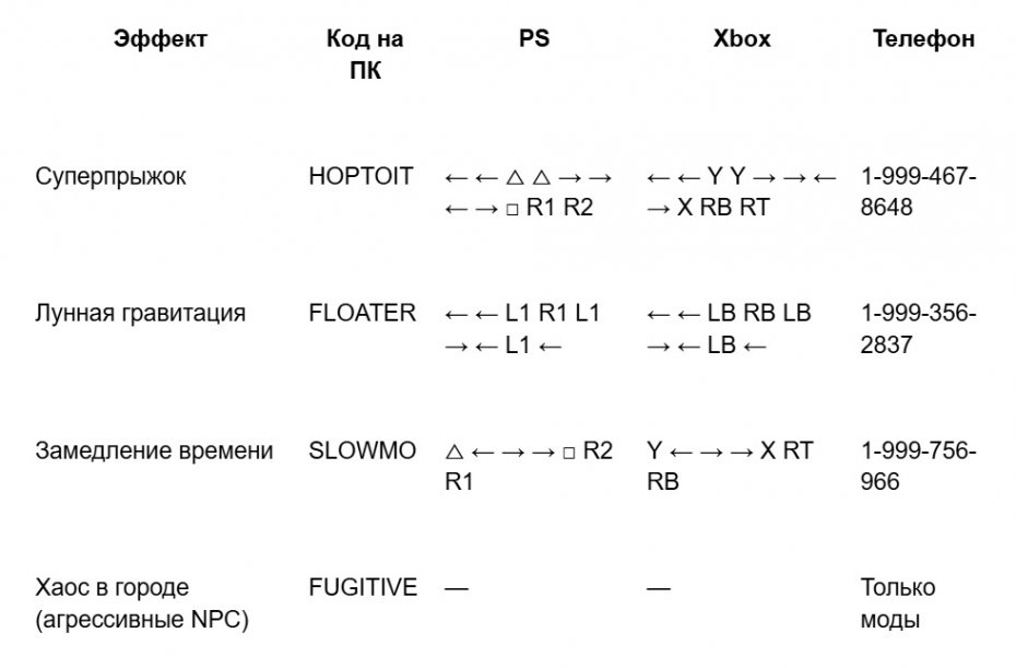 - Читы на ПК, PS и Xbox работают только в одиночной игре. Даже телефонные читы или консольные команды не сработают в онлайне.