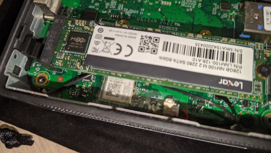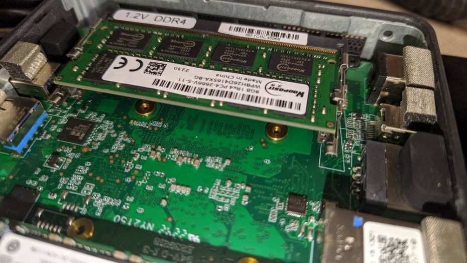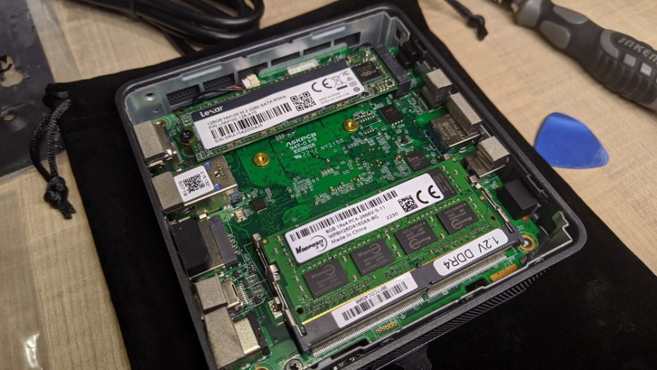 Внутри процессор Intel Celeron N5095 11-го поколения с графикой Intel UHD Graphics 605, 8 ГБ оперативной памяти DDR 4 и SSD-накопитель на 128 или 256 ГБ. В продаже также есть barebone-версия без модулей памяти. Предусмотрено пять USB-портов, подключение двух мониторов с разрешением до 4K, разъём Ethernet для проводного интернета и модули Wi-Fi и Bluetooth.