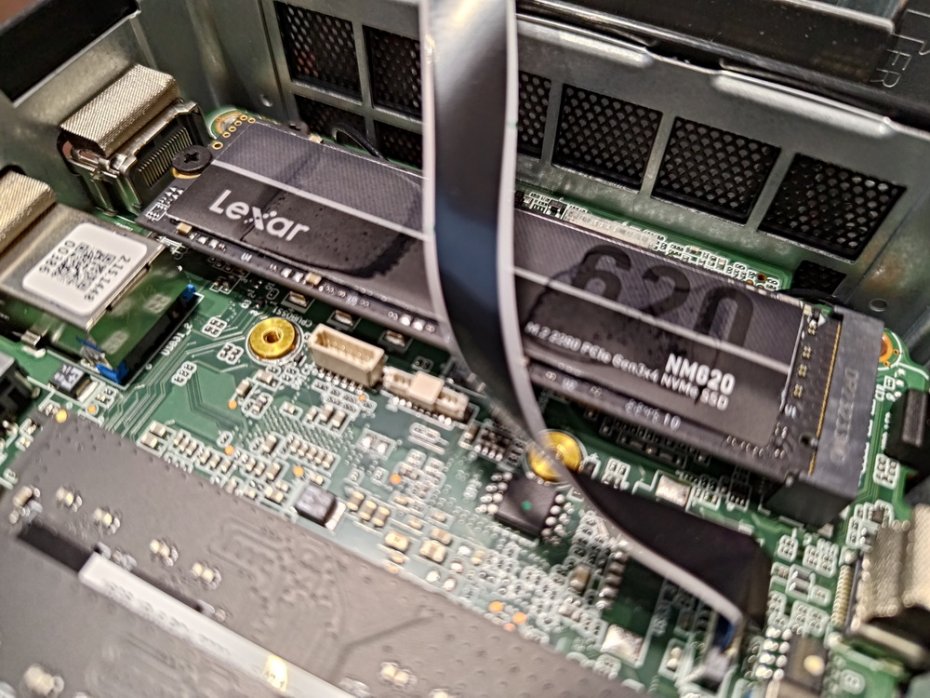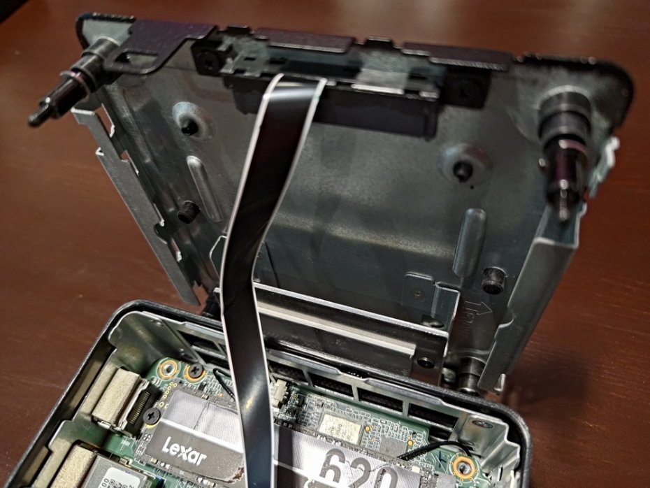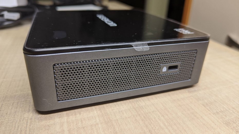 Компьютер охлаждается с помощью вентилятора, но работает почти бесшумно. Корпус устройства металлический, поэтому действует как пассивный радиатор, к тому же в нём предусмотрены вентиляционные отверстия для забора воздуха.
