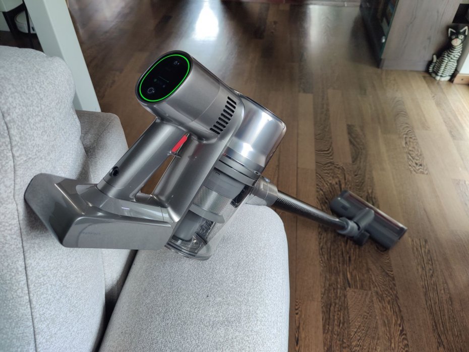 Мощность всасывания Dreame T30 — до 190 аэроватт, скорость вращения мотора — до 150 тысяч оборотом в минуту. Пылесос может крепиться на стене на специальном зарядном адаптере, благодаря чему он не мешается и всегда готов к использованию.