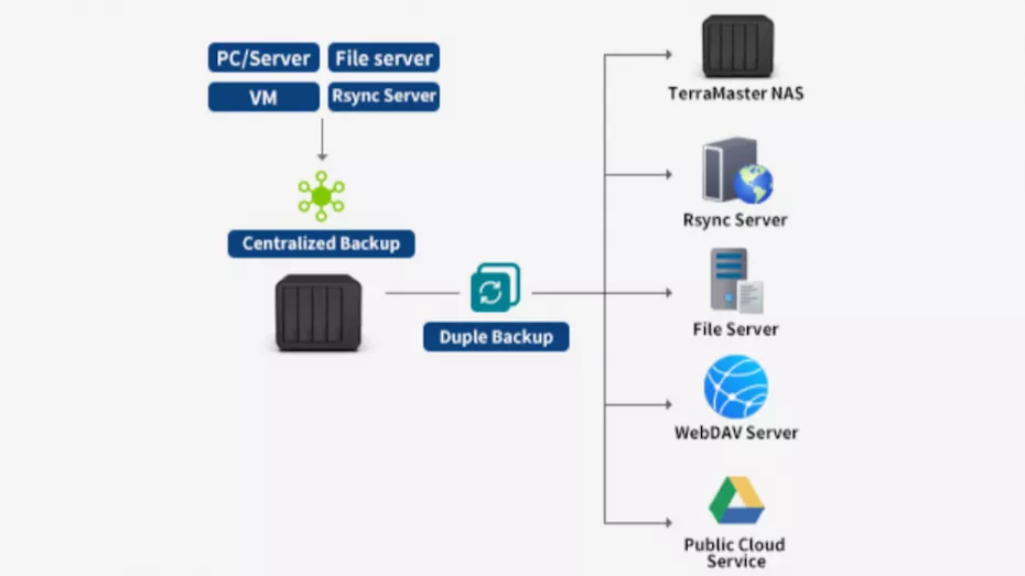 TerraMaster обеспечивает поддержкой выпущенную продукцию, а также постоянно работает над новыми устройствами. К примеру, недавно эта компания выпустила недорогой NAS-сервер F4-424 Pro с четырьмя отсеками для накопителей, а также предложила своим пользователям обновлённую версию утилиты Duple Backup, которая предназначена для создания резервной копии данных. С помощью Duple Backup можно сохранять бэкапы целых дисков или избранных папок на NAS-серверы, файловые серверы и в облачные хранилища, чтобы обезопасить себя от исчезновения важной информации. В настройках утилиты Duple Backup можно выбрать, какие именно директории будут архивироваться, куда именно и с какой периодичностью. В случае, если файлы будут утеряны из-за сбоев на жёстком диске, их можно легко и быстро восстановить. В приложении можно следить за тем, когда в последний раз создавался бэкап, чтобы быть уверенным, что файлы надёжно хранятся в разных местах.