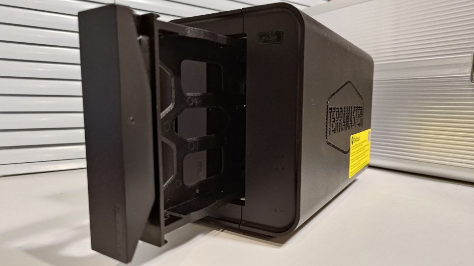 F2-212 унаследовал у старших моделей TerraMaster лёгкость и удобство установки накопителей: достаточно просто открыть лоток, задвинуть туда жёсткий диск до упора и закрыть его, он тут же определится системой и будет готов к использованию. Естественно, в NAS-сервер целесообразнее устанавливать магнитные жёсткие диски (они же HDD) большого объёма, но при желании можно поставить и твёрдотельные накопители (SSD), если требуется более высокая скорость записи и считывания файлов.