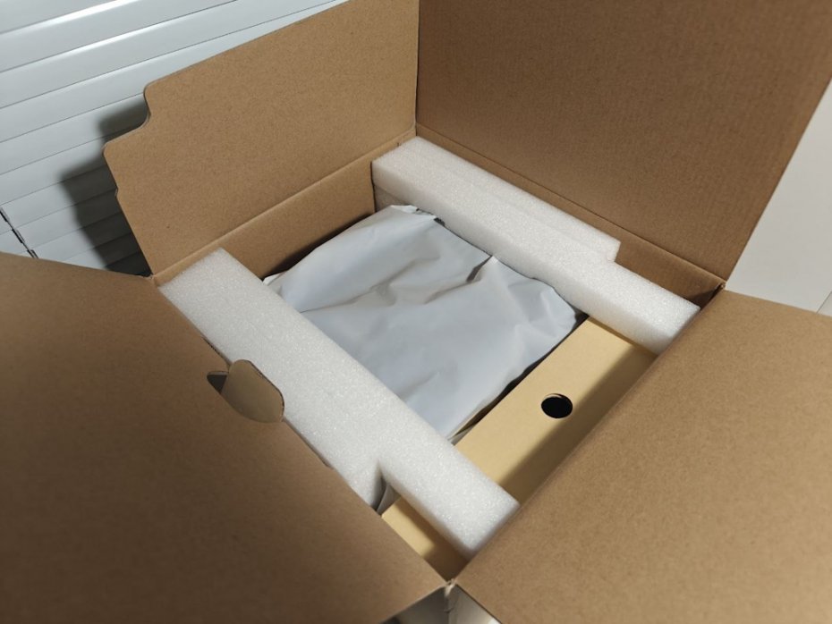 F4-424 поставляется в небольшой картонной коробке, внутри которой находится ещё одна — фирменная. Сама NAS-система упакована в пакет и защищена от повреждений при перевозке, в отдельной коробочке лежат блок питания, силовой кабель, болтики, Ethernet-кабель для подключения к сети, стикеры для маркировки накопителей и документация.