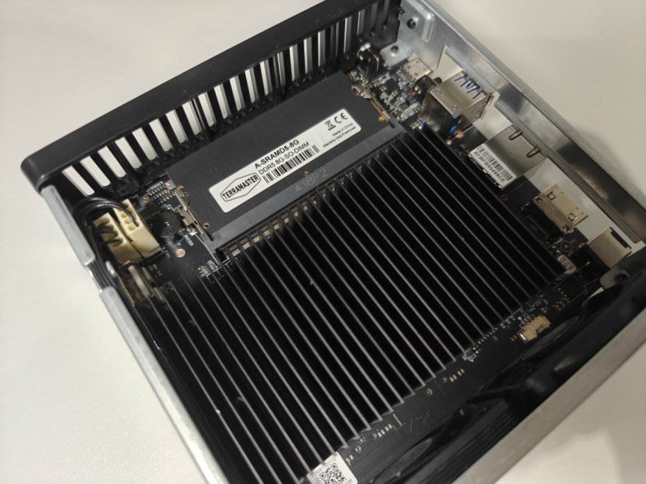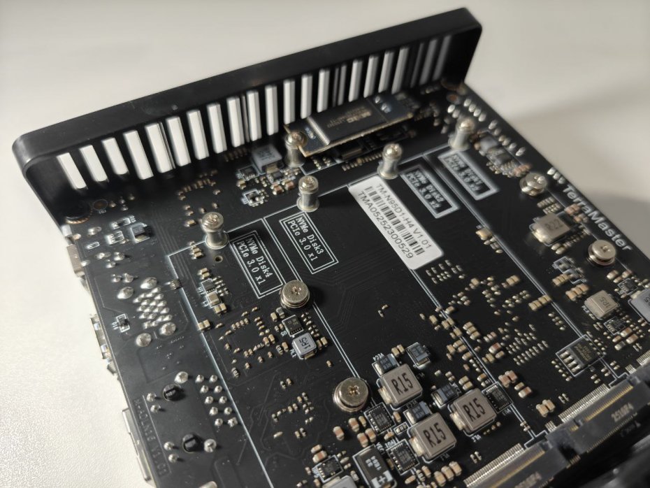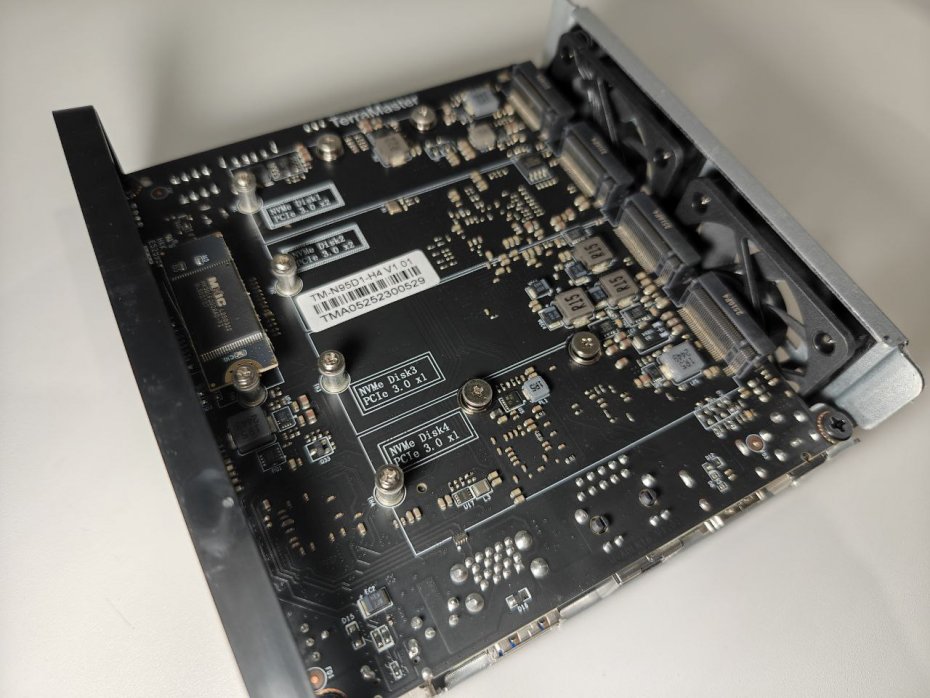 Главная идея F4 SSD — найти баланс между доступностью и производительностью. В основе устройства лежит современный 4-ядерный процессор Intel N95, 8 ГБ оперативной памяти DDR5 (с возможностью апгрейда до 32 ГБ) и четыре слота для накопителей M.2 NVMe. При этом инженеры TerraMaster пошли на компромисс, распределив ограниченные PCIe-линии процессора: два слота работают на скорости PCIe 3.0 x2, а два других — на PCIe 3.0 x1. Это решение напрямую повлияло на итоговую стоимость и наложило определенные ограничения на производительность в некоторых сценариях.
