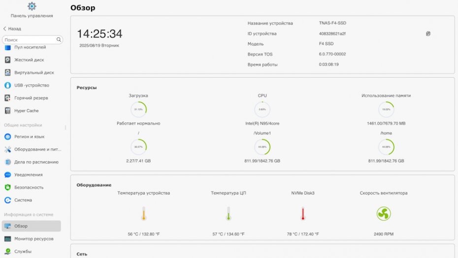 Важной особенностью этой модели является возможность использования не только фирменной операционной системы TerraMaster TOS 6, но и сторонних ОС, таких как TrueNAS Scale или UnRAID. Это помещает F4 SSD на перекрестье двух путей: готового решения «из коробки» и гибкой платформы для кастомизации.
