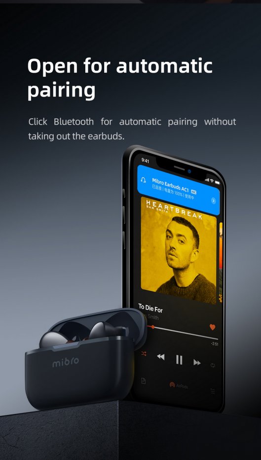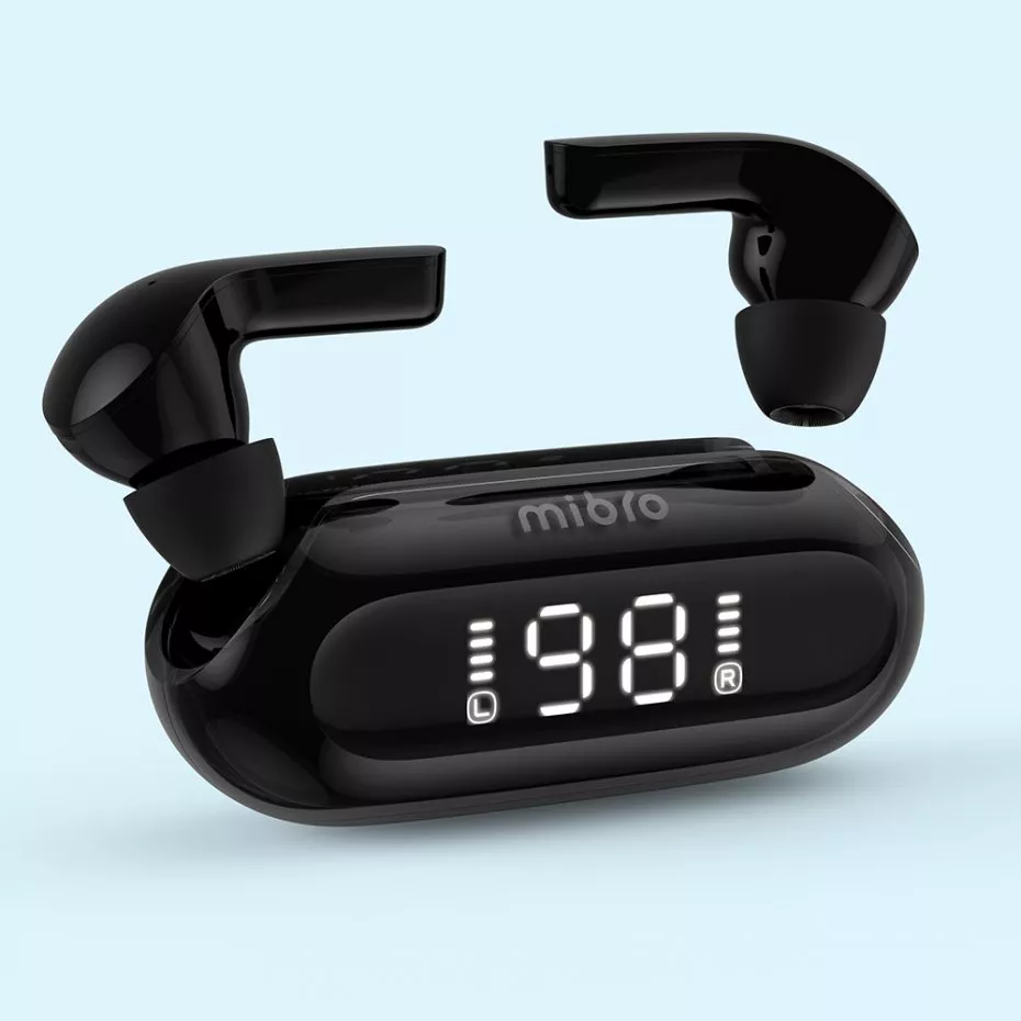 Эта модель обладает вставными силиконовыми амбушюрами и удобной индикацией уровня заряда на зарядном кейсе. Заряда наушников хватает на 5 часов музыки, 6,5 часов разговора по телефону, а с использованием кейса автономность продлевается до 40 часов. Как и у других моделей Mibro, эти наушники оснащены модулем Bluetooth 5.3, который моментально подключается к источнику звука и стабильно держит соединение.