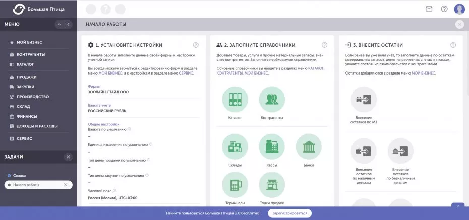 Посмотреть, что умеет новая система, можно в демоверсии, которая доступна без регистрации. Кроме того, в Большой Птице 2.0 предусмотрен бесплатный 14-дневный период.