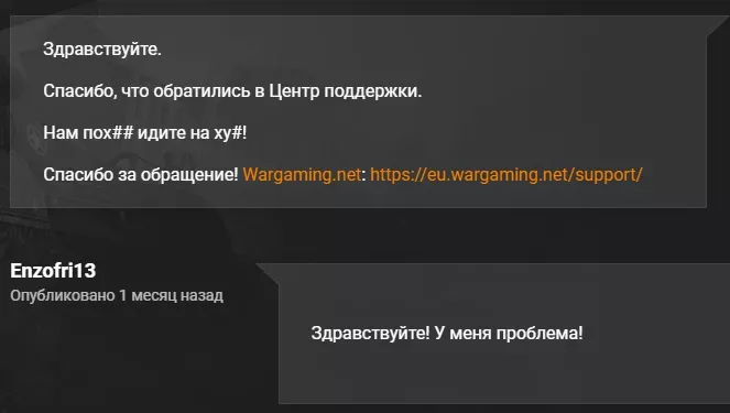 В общем, пообщавшись с техподдержкой, я выяснил, что они ничего не решаю, а решают только Wargaming, ну хорошо, тогда обратимся к ним и посмотрим, что скажут они. А эти ребята, оказались вообще крутыми манипуляторами.