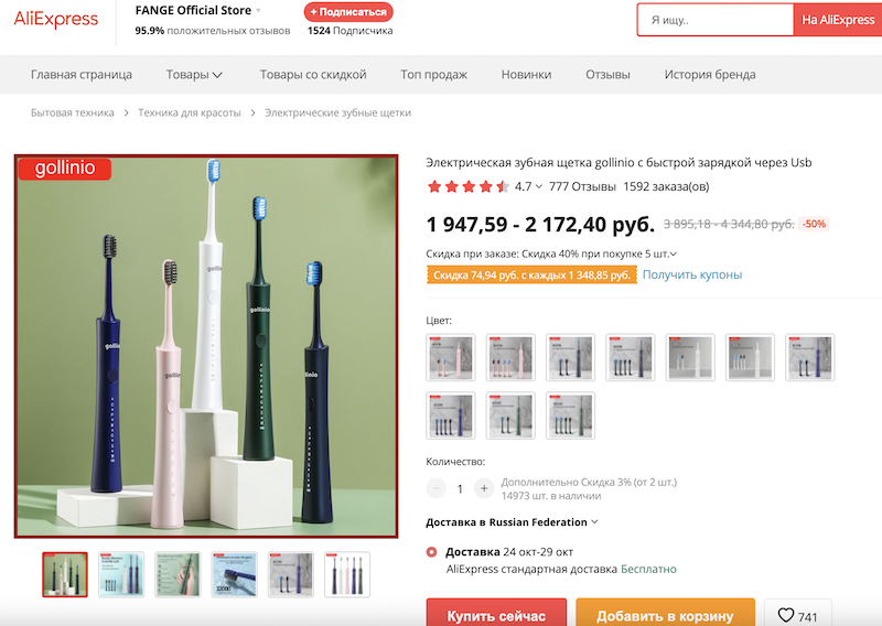 Электрическая зубная щетку от gollinio