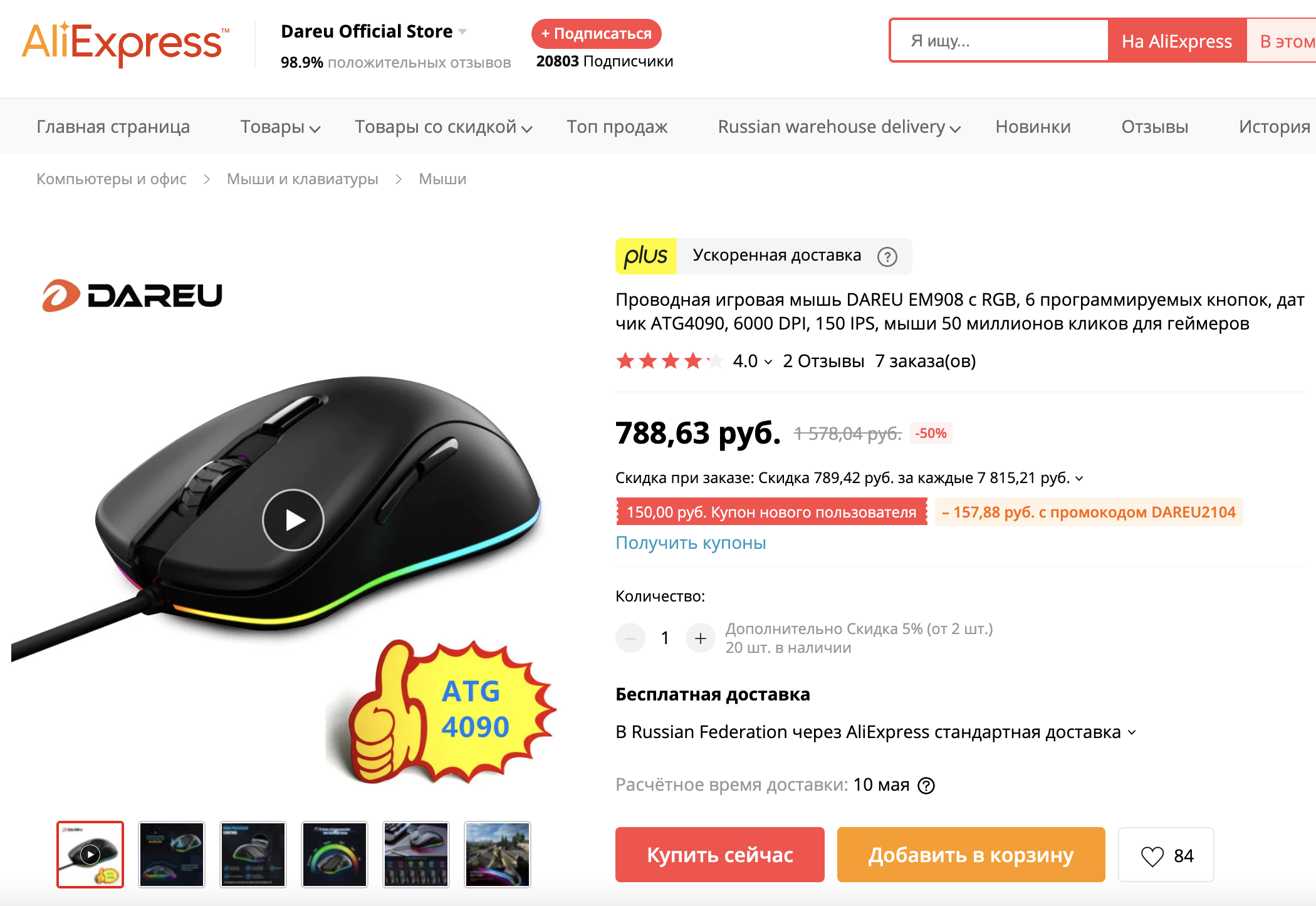 Максимальное значение DPI — 6000, значение регулируется — доступны шесть уровней (600, 1200, 2400, 3600, 4800, 6000). Кнопок шесть, в тестах производителя они выдержали 50 миллионов кликов без поломок.