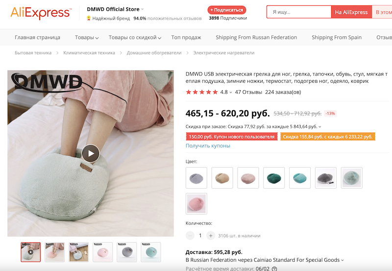 В комплекте идет пульт дистанционного управления, с которым можно контролировать температуру грелки. Размер грелки — 38 х 38 х 13 см, материал — плюшевая ткань.