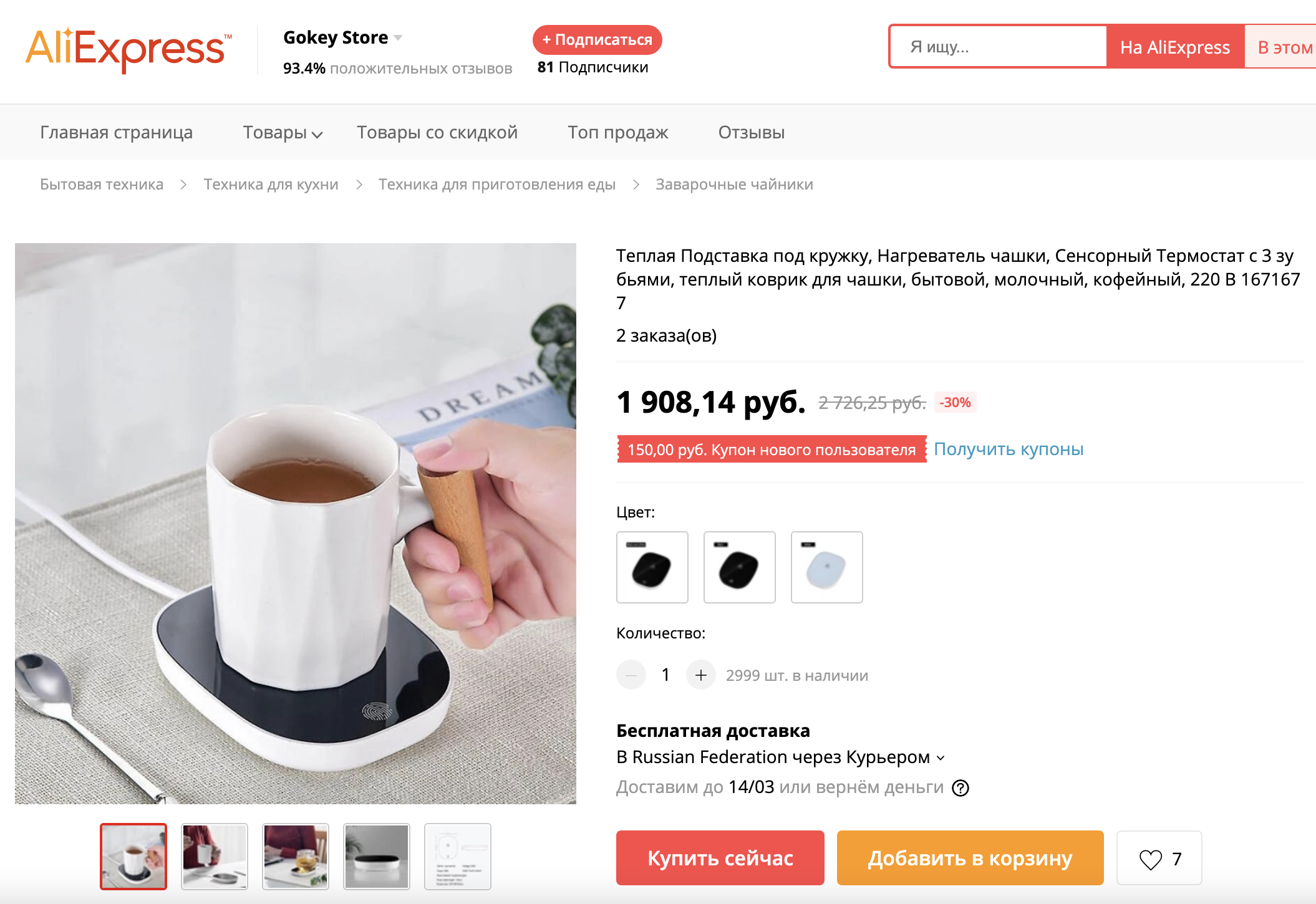 Миниатюрный блинчик внешне похож на беспроводную зарядку. Механика элементарная: аксессуар подогревается, на него ставится кружка с жидкостью, и она не остывает.