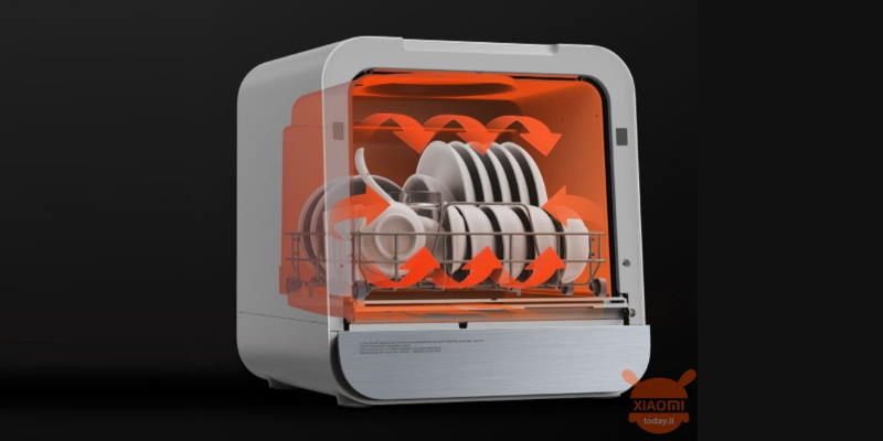 Yunmi Countertop Dishwasher Sugar не нужно подключать непосредственно к центральной система водоснабжения, достаточно залить воду в танкер в самом устройстве. Струи выбрызгиваются сверху и снизу в нескольких направлениях под давлением 11 мегапаскалей, не оставляя на посуде слепых зон. Посудомойка также моментально сушит посуду потоками горячего и холодного воздуха, поэтому сразу после процедуры мытья пользователь может достать из неё чистые и сухие тарелки и чашки.