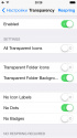 Твик Transparency, убирает фон дока. Убирает точки •••• убирает фон папок, убирает названия иконок, папок. И все это удобно и раздельно опционально.