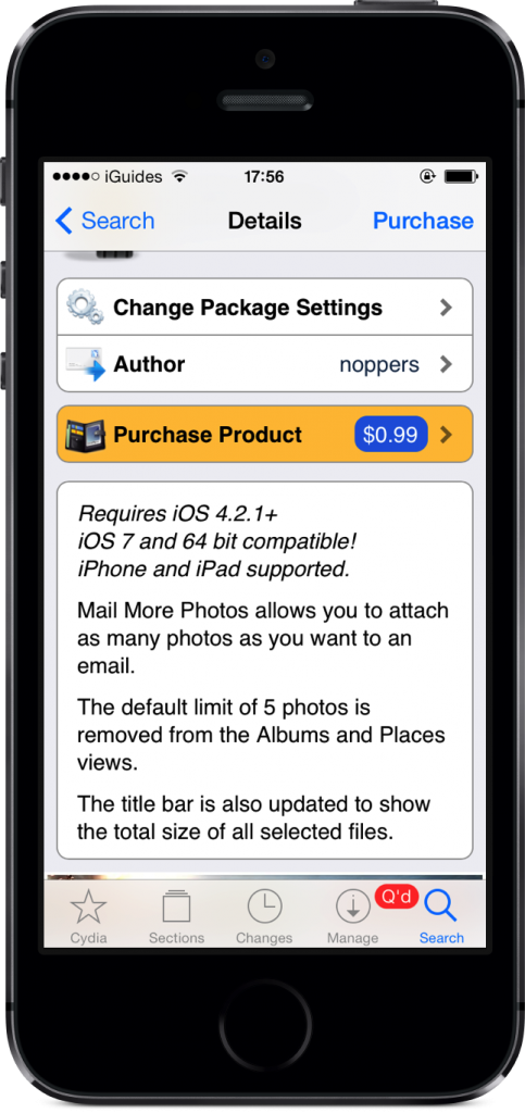 Обновление твика под iOS 7 и 64-битную архитектору. С Mail More Photos можно отправлять больше пяти фото за один раз в электронном письме, а при выборе твик суммирует объем вложений и показывает подсчитанные мегабайты в верхней строке.