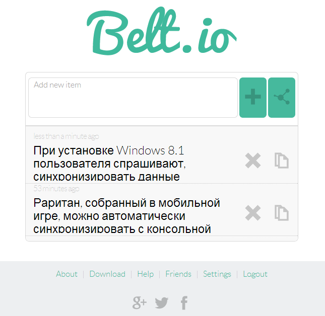 Иногда возникает необходимость отправить небольшой кусочек текста или ссылку с компьютера на смартфон или наоборот. Можно воспользоваться электронной почтой, можно — блокнотами с облачной синхронизацией, но проще всего делать это через специальный сервис, например Belt.io.