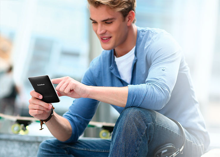 Вот фото от PocketBook для оценки масштабов книжки и мужской руки: