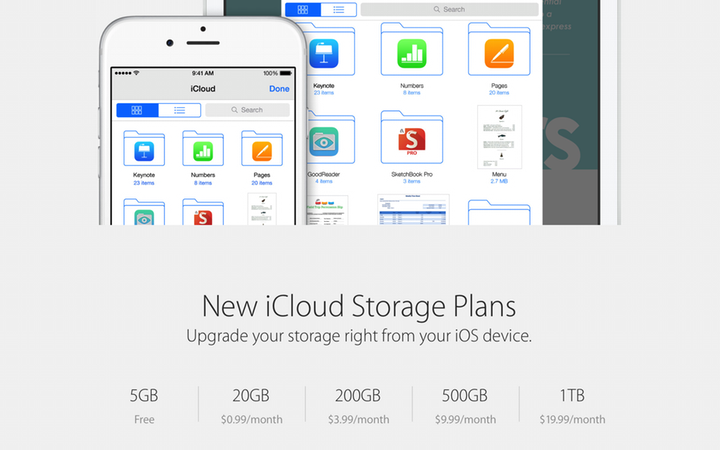 17 сентября новое облачное хранилище iCloud Drive станет доступно владельцам мобильных устройств под управлением iOS 8, а спустя месяц — на OS X Yosemite. Бесплатные 5 ГБ облачного пространства в iCloud остались без изменений, их получает каждый пользователь устройств компании Apple, зато в Купертино пересмотрели стоимость дополнительного места. По подписке можно получить еще 20 ГБ, 200 ГБ, 500 ГБ или 1 ТБ в облаке за $0.99, $3.99, $9.99 или $19.99 соответственно. Стоимость указана за один месяц использования расширенного хранилища, в перерасчете на год подписка обойдется от 12 до 240 долларов.