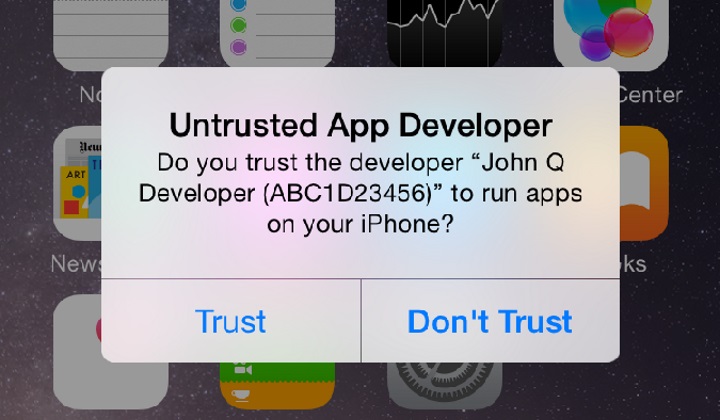 Компания Apple отреагировала на сообщения СМИ об обнаружении этой уязвимости. По ее словам, это вовсе не уязвимость, а нормальное поведение системы, которое позволяет разработчикам и IT-отделам организаций устанавливать на свои устройства собственные приложения. При установке появляется предупреждение, и если источник кажется сомнительным, достаточно нажать на кнопку отмены действия.
